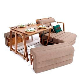 El aprovechamiento de espacios se ha convertido en un aspecto esencial en la casa del siglo XXI. Jóvenes que viven solos, en pisos compartidos o pareja tienen que hacer verdaderos 'tetris' para encajar todos los muebles necesarios, pero la empresa Unamo design studio llega para dar la solución a este problema. Cabe decir que estamos acostumbrados a los sofás cama, pero claro, la cosa mejora si también es capaz de convertirse en chaise long, mesa de escritorio con butaca y mesa de comedor.